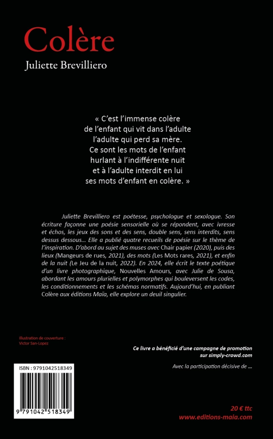 Il est maintenant possible de commander votre ou vos exemplaire(s) ; plus les préventes seront nombreuses, plus "Colère" sera promu et diffusé. En retour, vous serez présents dans le livre en page de remerciements et vous recevrez le livre en avant-première, frais de port inclus.