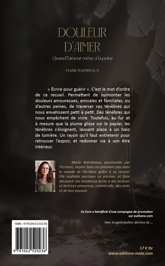 Ce recueil de poèmes met en avant les douleurs amicales, amoureuses mais aussi familiales qui nous éjectent dans l’ombre pendant si longtemps qu’on a l’impression que notre vie va s’écrouler. Ce recueil c’est l’histoire de plusieurs combats menés pour survivre face aux ténèbres qui tentent de nous envahir. Mettre par écrit ces douleurs était un moyen de les combattre et de se rendre compte qu’il y a toujours une petite lueur d’espoir qui demeure en nous et qu’il faut à tout prix l’entretenir.