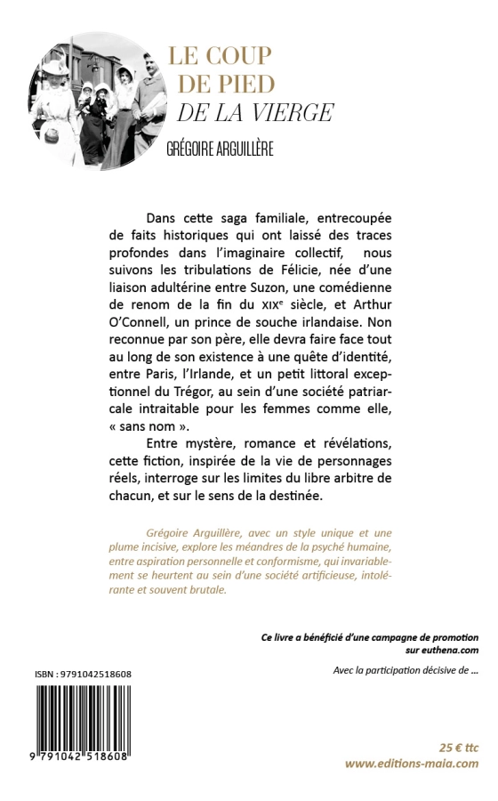 Cette saga familiale, inspirée de faits réels, et émaillée d'événements historiques qui ont laissé des traces profondes dans l'imaginaire collectif, permettra au lecteur de suivre les tribulations de Félicie, née d'une liaison adultérine entre Suzon, une comédienne de renom de la deuxième moitié du 19e siècle, et Arthur O’Connell, un prince irlandais.