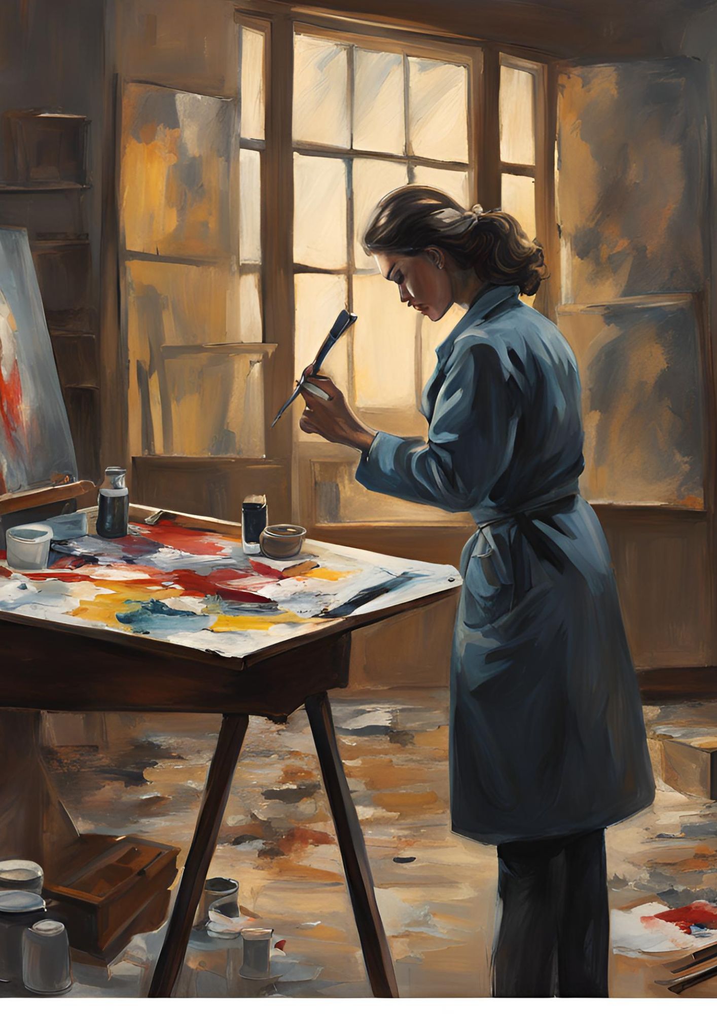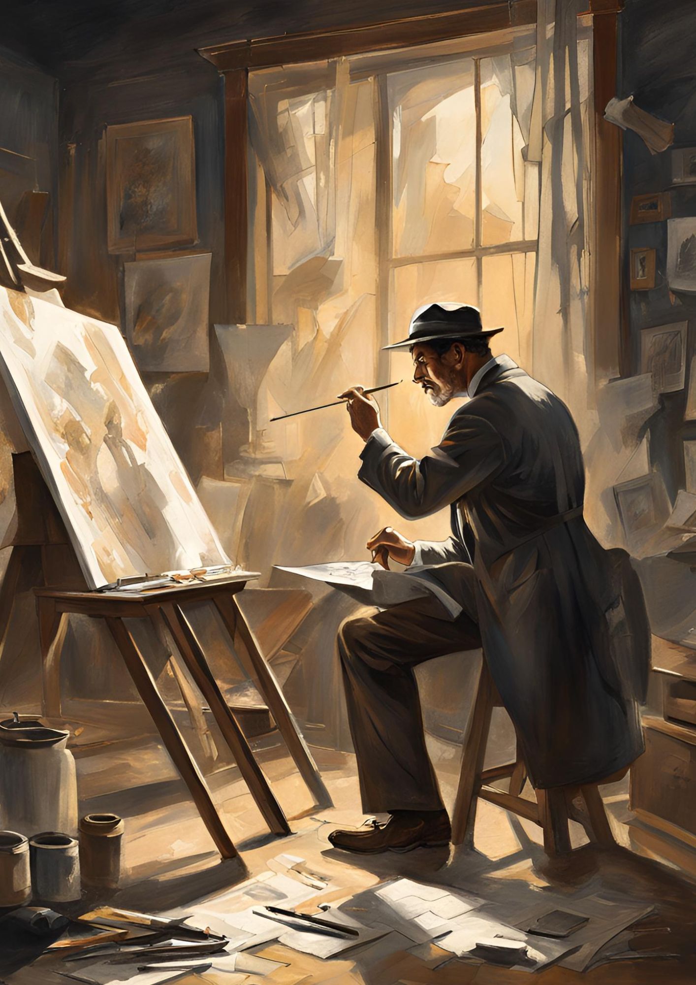 Et un jour, enfin, le tableau fut terminé. Il fut placé en vitrine, là où Barbara exposait ses plus belles pièces. Il attirait immédiatement l’œil, comme une signature invisible, un dernier murmure d’elle au monde. Une silhouette familière s’arrêta devant la galerie : César. Il observa le tableau en silence. C’était elle. Barbara s’était peinte, à demi dissimulée dans un jeu d’ombres et de lumière, le regard tourné vers un horizon inconnu. Un adieu, un secret, un espoir. Toussaint le rejoignit.