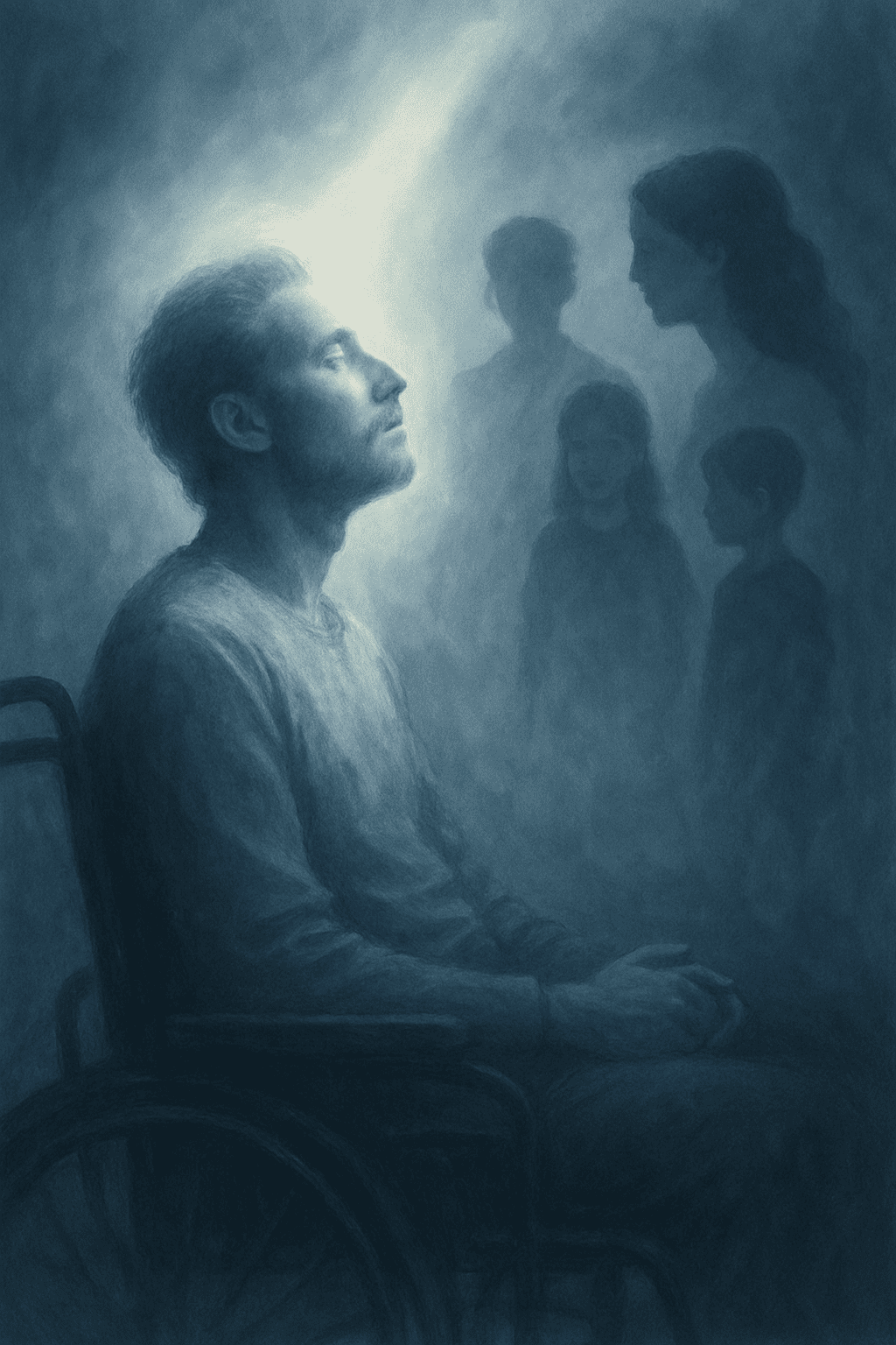 identique. Le silence, le bruit des machines, les visites qui rythment mon absence au monde. Je ne sais plus où commence une journée, ou fini l’ autre. Tout se fond dans une masse informe de rien. J’ ai cessé d’ attendre quelque chose. Je n’ attend plus rien. Mon réveil fut un choc brutal, une déchirure. Mais maintenant, ce n’ est plus un choc, c’ est autre chose. Un épuisement. Pas un épuisement physique, non. Mon corps ne ressent plus la fatigue, il ne ressent plus rien. Mais mon esprit…Mon esprit s'effondre lentement, sous le poids de cette existence figée. Il ne reste que moi et mes pensées. Ces pensées au début, je les fuyais. trop nombreuses, trop douloureuses. Elles tourbillonnaient sans cesse se cognant aux murs invisibles de ma cage de chaire. Mais peu à peu, j’ ai appris à les écouter. non pas comme un prisonnier qui subit sa peine, mais plutôt comme un homme qui cherche un chemin.Chaque matin ils viennent. toujours les mêmes gestes. Toujours le même rituel. On soulève mes bras, on retourne mon corps, on lave cette chair qui n’ est plus que l’ ombre de moi-même. Seulement un corps mort qu’ on empêche de mourir, qu’ on empêche de pourire. Je perçois la pression de leur mains, la fraîcheur du linge humide sur ma peau, mais rien ne me touche vraiment, comme si tout cela se passait derrière une vitre invisible. Ils parlent parfois. Des mots simples. Des phrases routinières. Ils me disent que je suis courageux, que je m’ adapte bien….Je ne réponds rien. Pas parce que je ne veux pas, mais parce que je ne peux pas. Alors je ferme les yeux et je plonge ailleurs. Au début, ce n’ était que des souvenirs, des éclats du passé qui surgissent sans prévenir. Je revois le sable sous mes pieds, L’ éclat doré du soleil couchant sur l’ eau, le rire de mes enfants qui courait le long de la plage La chaleur de la main de ma femme glissé dans la mienne.