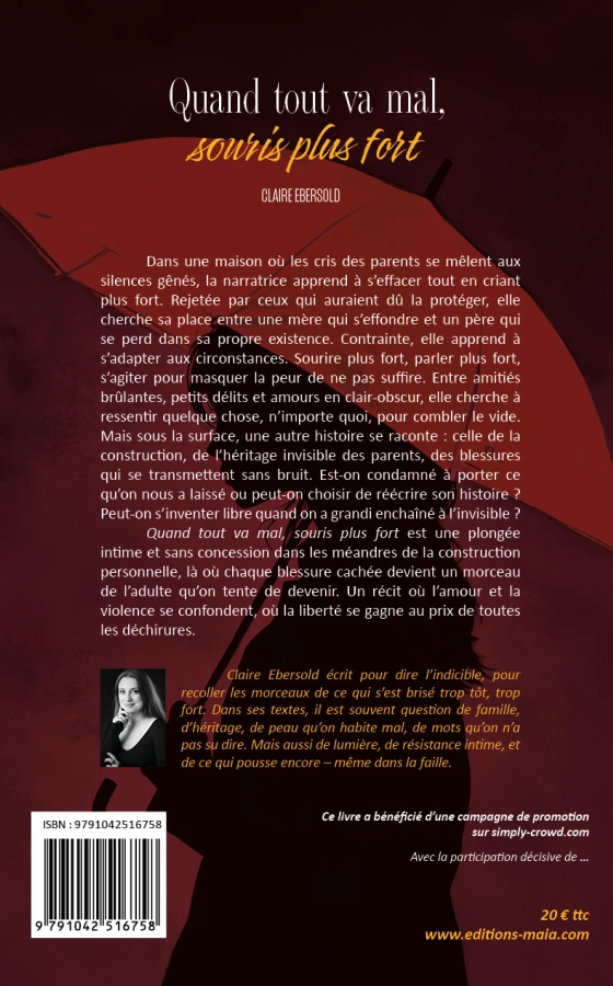 Quand tout va mal, souris plus fort est un roman intime, brut, inspiré d’une histoire vraie — mais transfiguré par l’écriture.