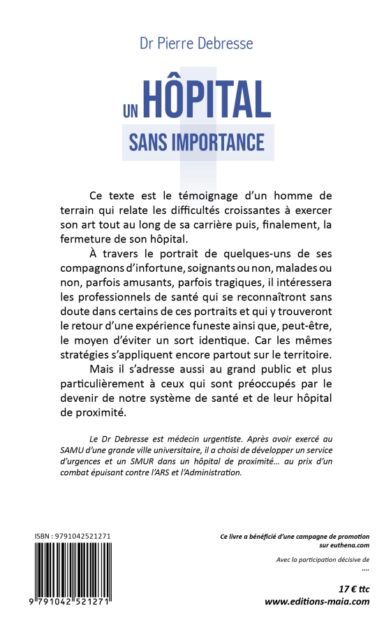 À travers une série de portraits, soignants ou non, et d’anecdotes, parfois incroyables voire amusantes, et pourtant toutes véridiques, l’auteur raconte comment on est parvenu à fermer son service d’urgences qui rendait pourtant de grands services, puis, finalement, l’hôpital tout entier. Il s’adresse donc à tous ceux qui vivent dans un désert médical et qui sont soucieux de l’avenir de leur hôpital de proximité. Les professionnels de santé y trouveront aussi une description des techniques utilisées par l’administration pour parvenir à ses fins dont la plus évidente est de « diviser pour mieux régner ».
